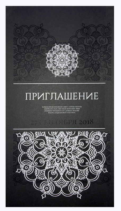 Печать конвертов на дизайнерских темных бумагах и картонах белым цветом.