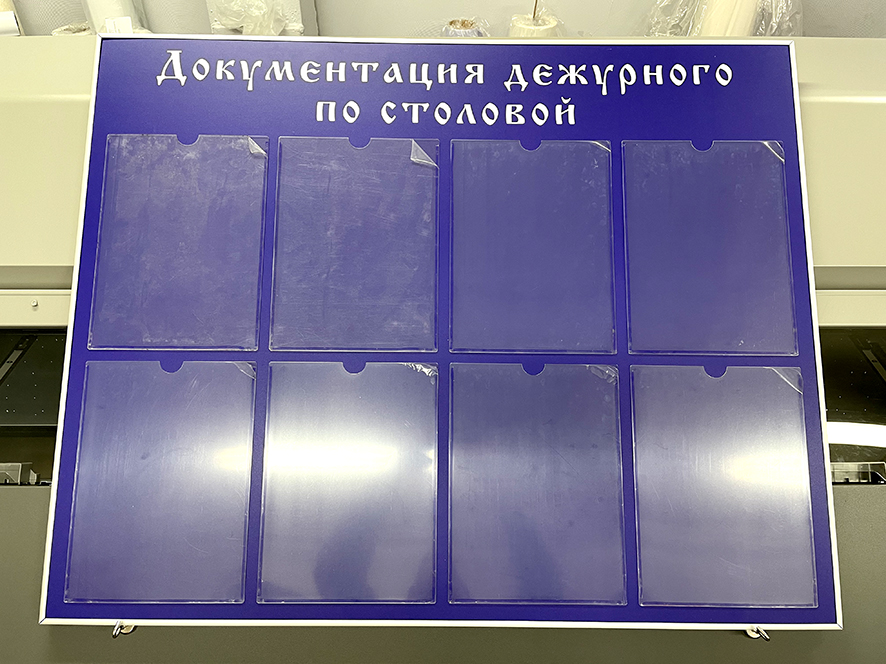 Весь процесс печати проходит под жестким контролем, потому что мы работаем на собственном оборудовании, поэтому по Санкт-Петербургу у нас низкие цены на инфостенды и печать табличек. Кроме того, мы работаем оперативно и можем выполнить заказ от 1 дня.